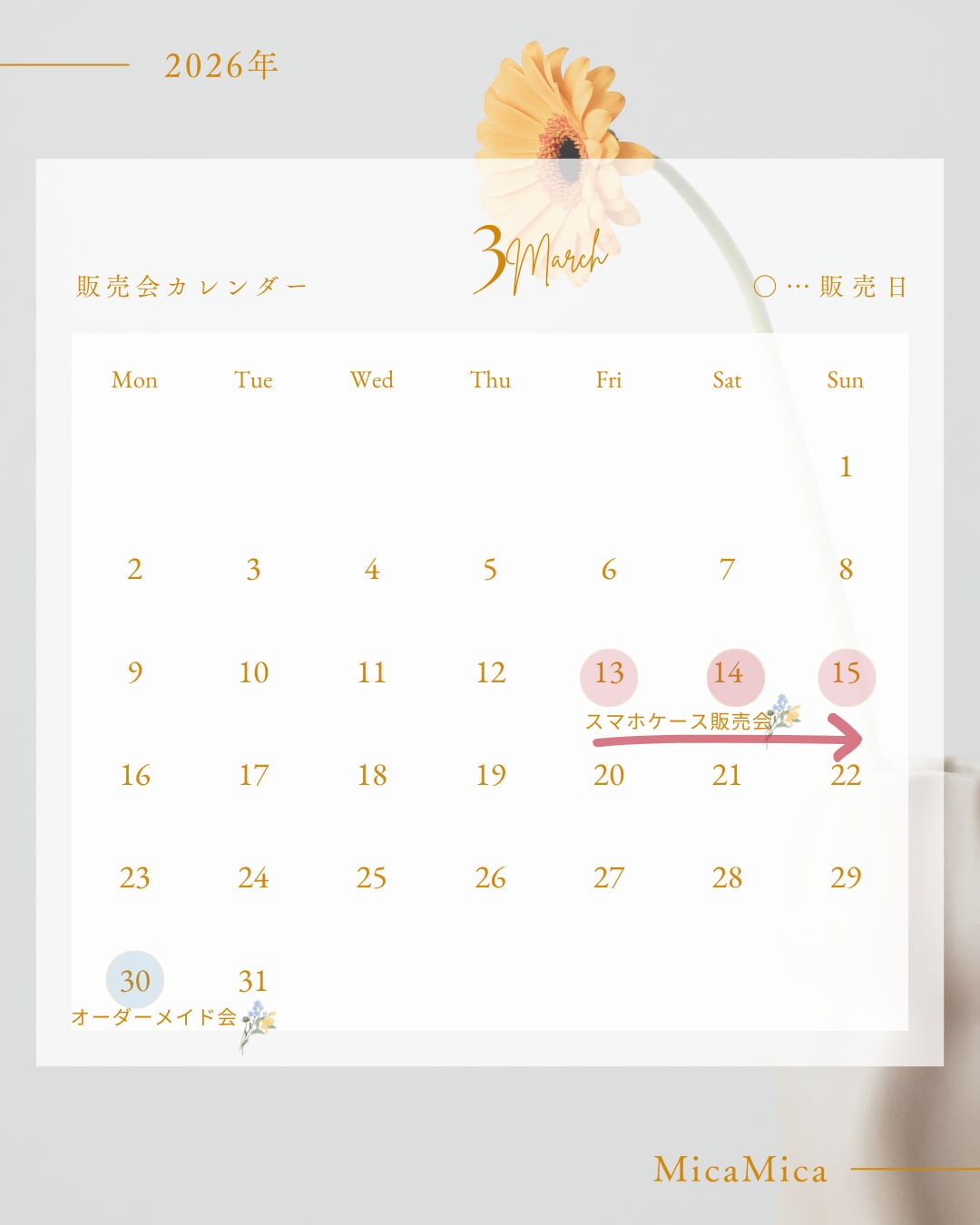 Mica Micaスマホケースは、お花の旬に合わせて、毎月一度だけ販売している期間限定ショップです。デザインは商品一覧よりご覧ください。