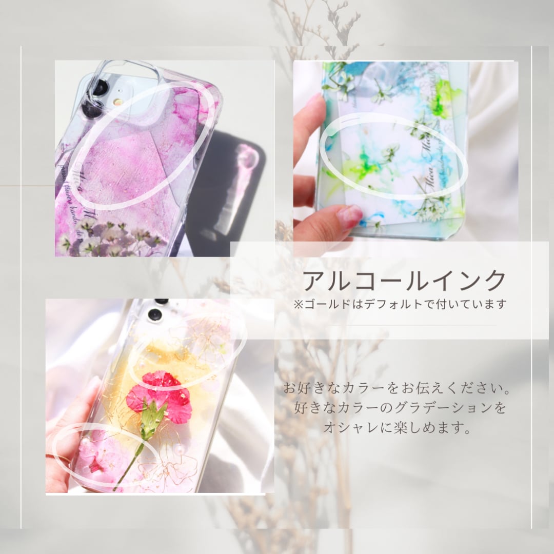 ・押し花:注文後に品質にこだわって手作りしたものを使用