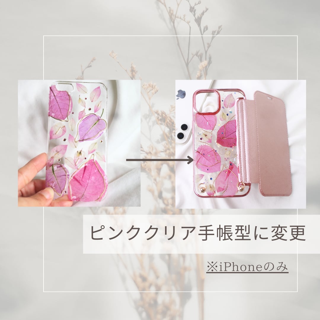 本物のお花を使ったデザインは、一枚一枚の花びらの質感までこだわり、スマホに特別な彩りを与えます。