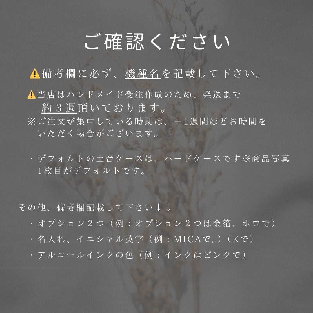 ⚠️ケースサイズ(機種名)、オプション内容を備考欄に記載お願いいたします。