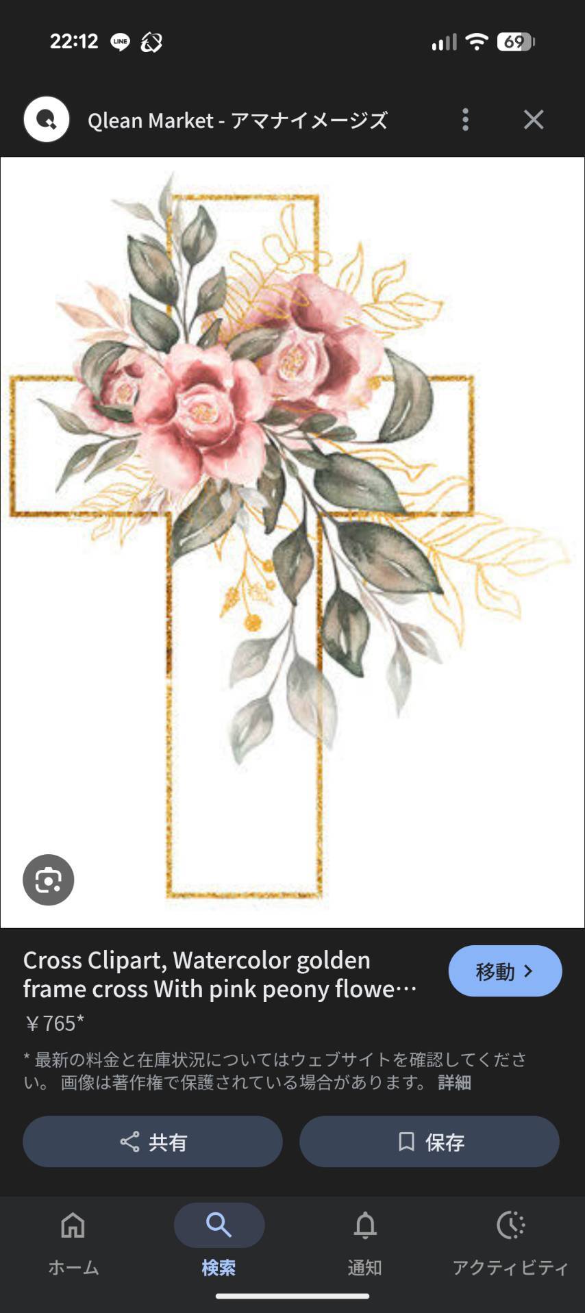 ※画像の背景の白い部分がそのまま手帳の大きさだと考えた場合、もう少し十字架が小さく。余白の隅の部分にもお花を。