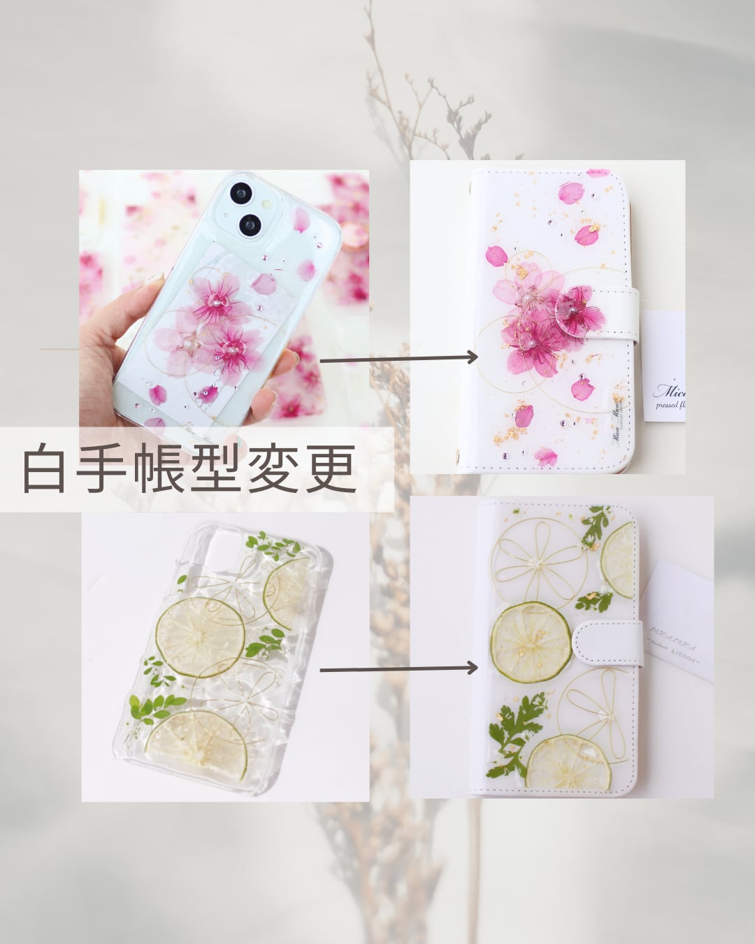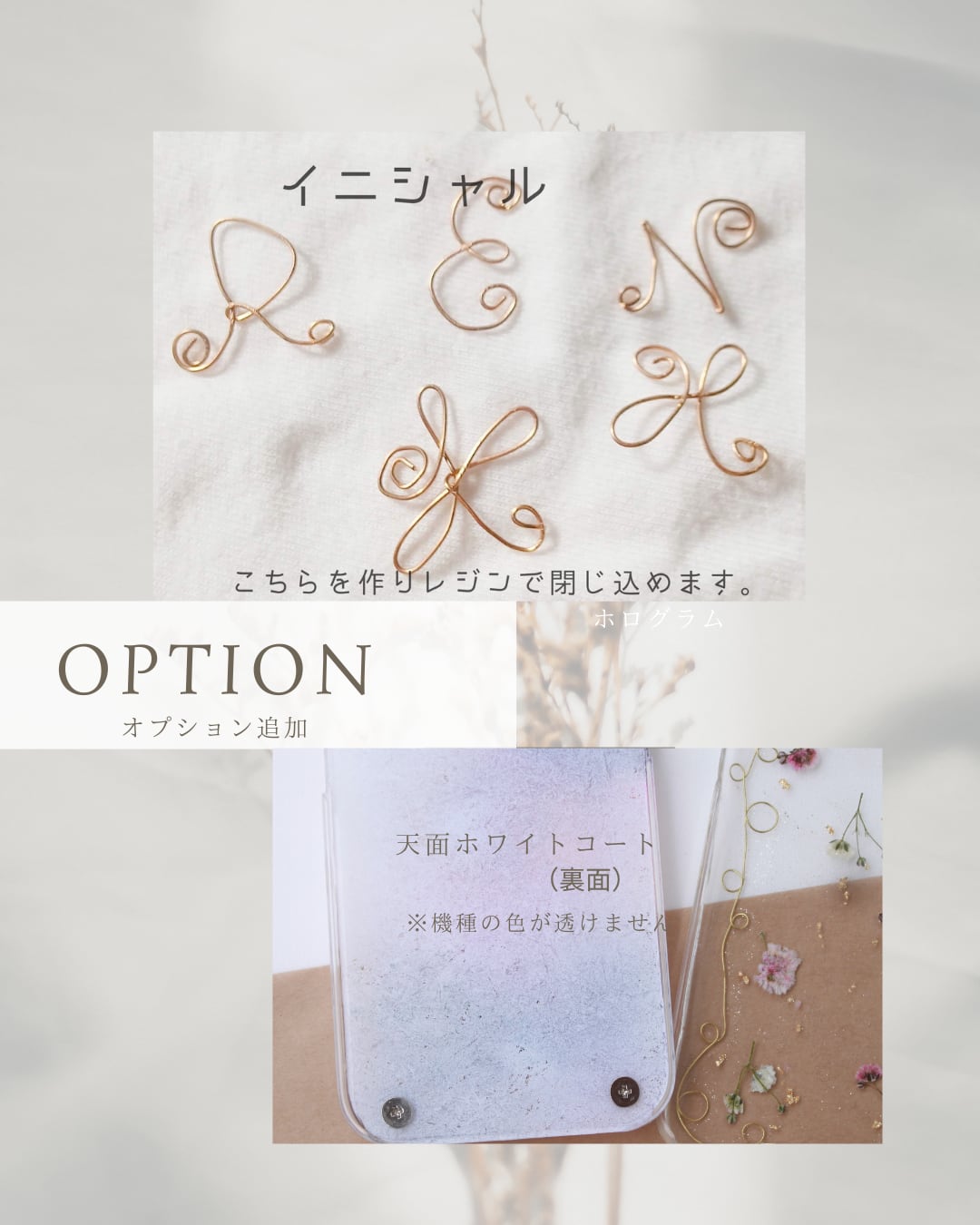 ・押し花:注文後に品質にこだわって手作りしたものを使用