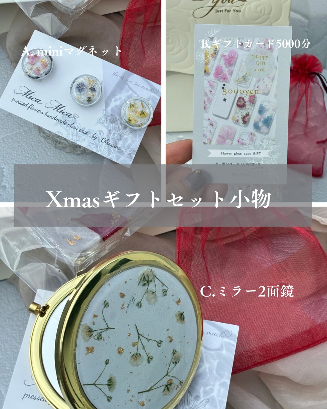 ・押し花: 注文後に品質にこだわってほかの素材と組み合わせ、手作りしております。