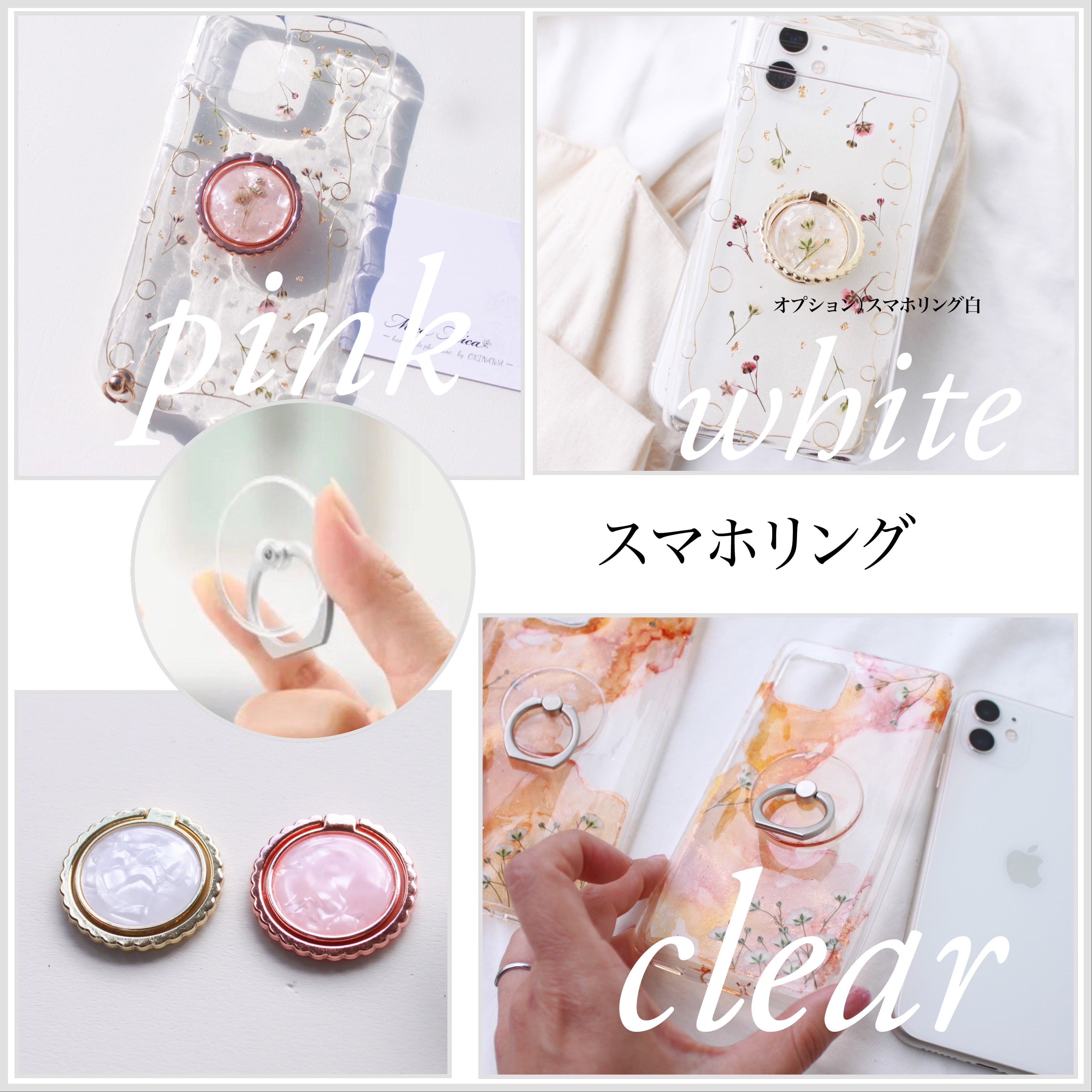 クリアが一番人気。360度回転。気泡なし。強力接着